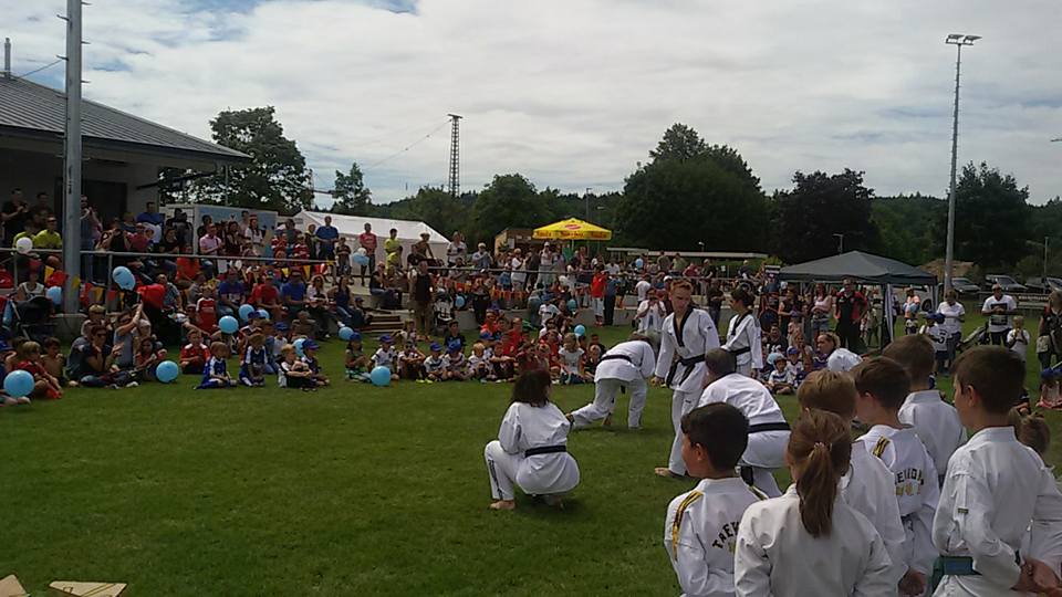 Der anschließende Auftritt des Taekwondo-Zentrums Remchingen unter der Leitung von Stefan Fritsch mit zahlreichen Kampfsportlern begeisterte nicht nur die Fußballer.