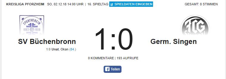 Unentschieden wäre gerecht, aber im Endeffekt zählen die Tore. Kämpferisch eine gute Leistung. Glückwunsch an den Herbstmeister aus Büchenbronn.