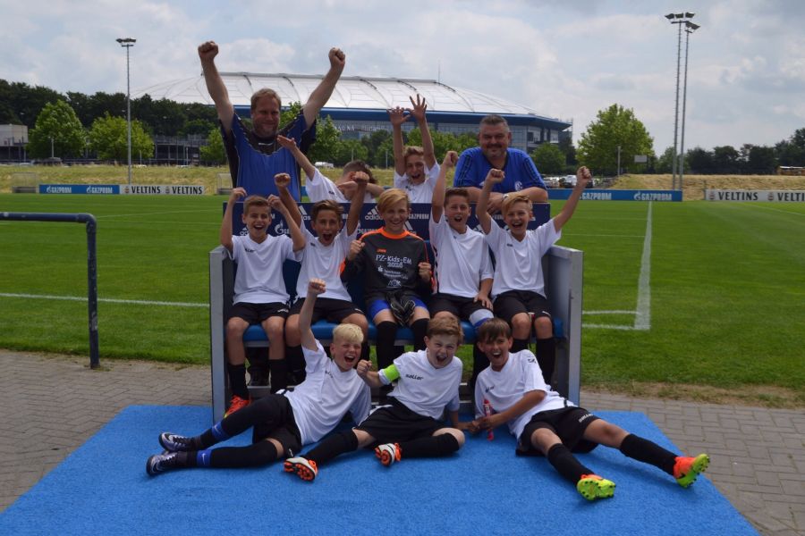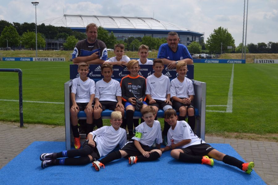 Am Samstag den 09.07.2106 war es soweit: 10 Spieler der neuen D-Jugend (Saison 2016/2017) machten sich, zusammen mit vielen Eltern auf den 400 km langen Weg auf Schalke; dort hatten wir für den Knappenkids-Cup 2016 gemeldet.