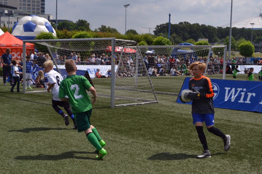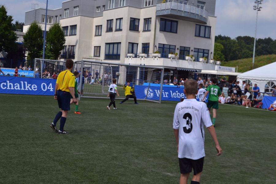 Es stand nun wieder eine Pause von knapp einer Stunde an, die der eine oder andere bei der Karawane der Köche verbrachte, andere wiederum waren im Fan-Shop von Schalke 04 zu finden. Danach stand das letzte Vorgruppenspiel gegen die JSG Zissen an. Der Gegner ging mit 2:0 in Führung und man fing von außen zu Bangen an um das Achtelfinale. Aber die Jungs zeigten Moral und dreht ein weiteres Mal ein Spiel und gewannen dann noch mit 4:2. GRUPPENSIEG!