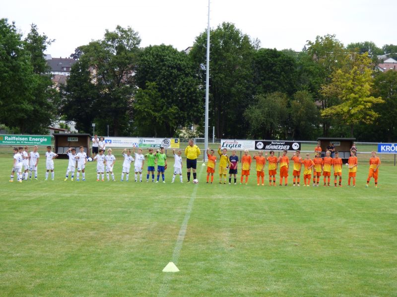 Der erste Spielabschnitt gestaltete sich recht ausgeglichen. Die FCG Abwehr machte ein durchkommen auf unser Tor sehr schwierig, nur wollte vorne der Ball nicht ins Netz, bis nach einem Foul an Keanu kurz vor der ersten Pause Pascal den Strafstoß sicher ins obere rechte Eck versenkte. Der zweite Durchgang endete torlos, wenn auch Chancen auf beiden Seiten zu sehen waren. Bei Abschnitt drei schien die Defensive des FCG nicht mehr so dominant zu sein, immer wieder gelang es den Jungs vom KSC bis vor unseren Kasten durchzudringen, so war der 1:1 Ausgleich auch nicht verwunderlich. Im letzten Teil der Partie schien doch teilweise die Puste und Konzentration auszugehen, auch hier waren wir oft einen Schritt zu langsam und so konnte der KSC den Treffer zum 1:2 Endstand setzen.