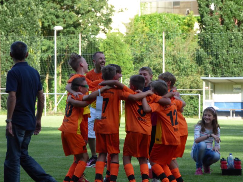 Hier wartete der Karlsruher SV auf uns, der nach einer ungeschlagenen Gruppenphase und 13:0 Toren bis dahin als Favorit des Turniers galt. Unsere Mannschaft konnte sich gut behaupten und wir waren gedanklich schon beim nächsten Neuner-Schießen, als eine Minute vor Schluss erst Pascal knapp verfehlte, der Nachschuss von Nathanael ebenfalls nicht traf und im dritten Anlauf dann Keanu endlich den Ball über die Linie brachte. Nachdem zu Beginn noch keiner damit gerechnet hatte, so standen wir nun doch tatsächlich im Finale gegen DJK Durlach. Es schien als wäre auf den Abend hin unsere Mannschaft auf einmal aufgewacht und zum ersten Mal in diesem Turnier konnte man den Siegeswillen spüren. Pascal netzte zweimal kurz hintereinander den Ball ins gegnerische Tor. Die schockierten Durlacher mussten kurz darauf einen Treffer von Keanu und zuletzt nochmal von Pascal zum 4:0 Endstand einstecken.