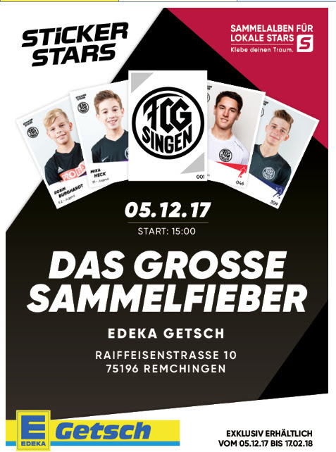 Das erste FCG-Stickeralbum steht in den Regalen des EDEKA Getsch, der an diesem Tag seinen Einkaufsmarkt wiedereröffnet!