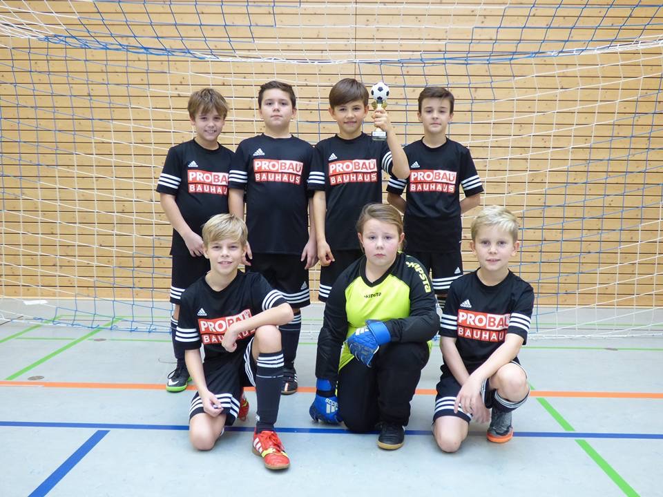 Ganz gut aufgelegt präsentierten sich unsere Jungs an diesem Nachmittag und marschierten ungeschlagen und ohne Gegentor durch das Feld. Daß es dennoch nicht zum Gruppensieg reichte, lag an der etwas schlechteren Tordifferenz. Als Gruppenzweiter durften wir dann das Spiel um den dritten Platz bestreiten. Hier gabe es nach der regulären Spielzeit keinen Sieger und so mußte ein Neunmeterschießen über den Einzug ins Finale entscheiden. Hier waren unsere Turnschuhe aber dann doch etwa zu locker geschnürt und es reichte leider nichtzum Sieg. Ein 4.PLatz bei den Hallenkreismeisterschaften ist aller Ehren wert.. Super Jungs !Es spielten : Lukas, Robin, Leon, Rick, Filippo, Jakob und Dzenan