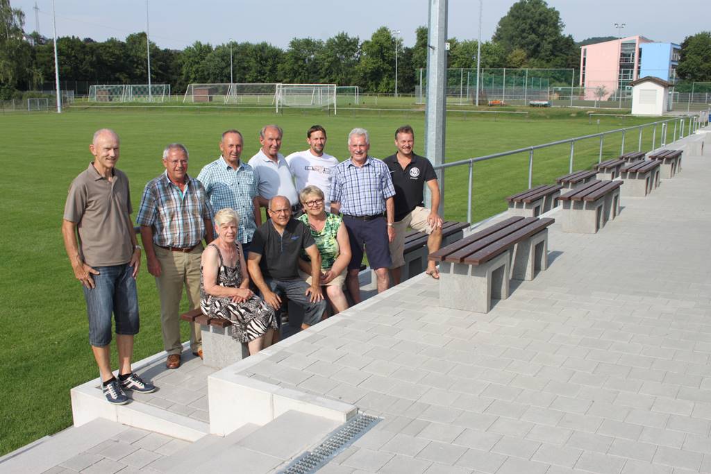 Da sie vor dem Vereinsheim ohnehin aufbaggern mussten, wandelten die Helfer den dortigen Grashang auf voller Spielfeldlänge in einen gemütlich gepflasterten Sitzbereich mit Stufen und Bänken um: „Der Grashang war rutschig, schwer zu pflegen und hatte eine hohe Unfallgefahr, jetzt haben wir eine tolle Sitzfläche, die man bei Festen auch als Biergarten nutzen kann und noch dazu ein paar Meter dazugewonnen“, freut sich der ehrenamtliche Bauleiter Höpfinger, der selbst 373 Arbeitsstunden beigetragen hat, und bedankt sich bei den über 50 Helfern, allen voran bei Jürgen Miles, Kurt Wilser, Heinz Müller, Nino Di Piazza (Vorsitzender Gebäude und Infrastruktur), Patrick Schäfer mit den Kickern der „Alten Herren“ und dem rührigen Bewirtungsteam Ursula Grässle und Ursula Jost, außerdem bei Vereinsmitglied Manuel Knöller, der den Bau mit seinem Bagger unterstützt hat und bei Flutlicht-Experte Alfons Gartner.