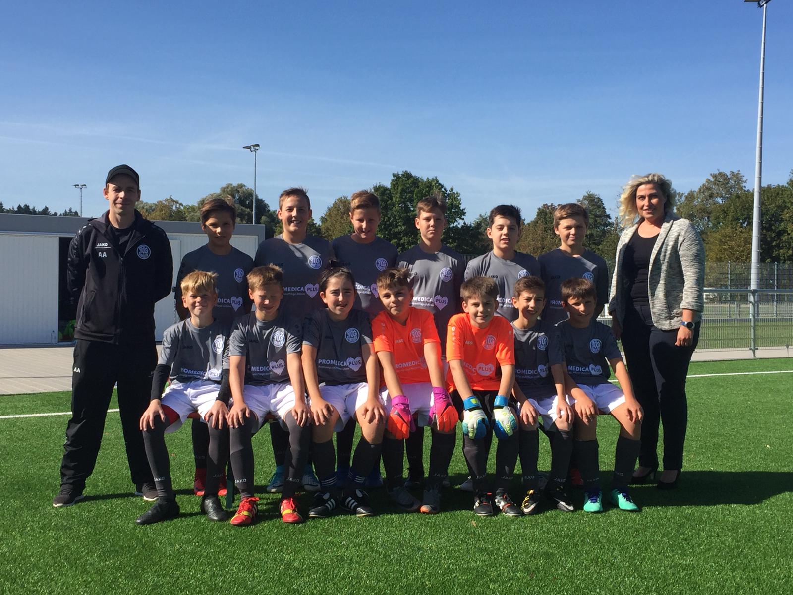 Bild: D-Junioren mit Olga Lindörfer von PROMEDICA PLUS und Trainer Andreas Adam