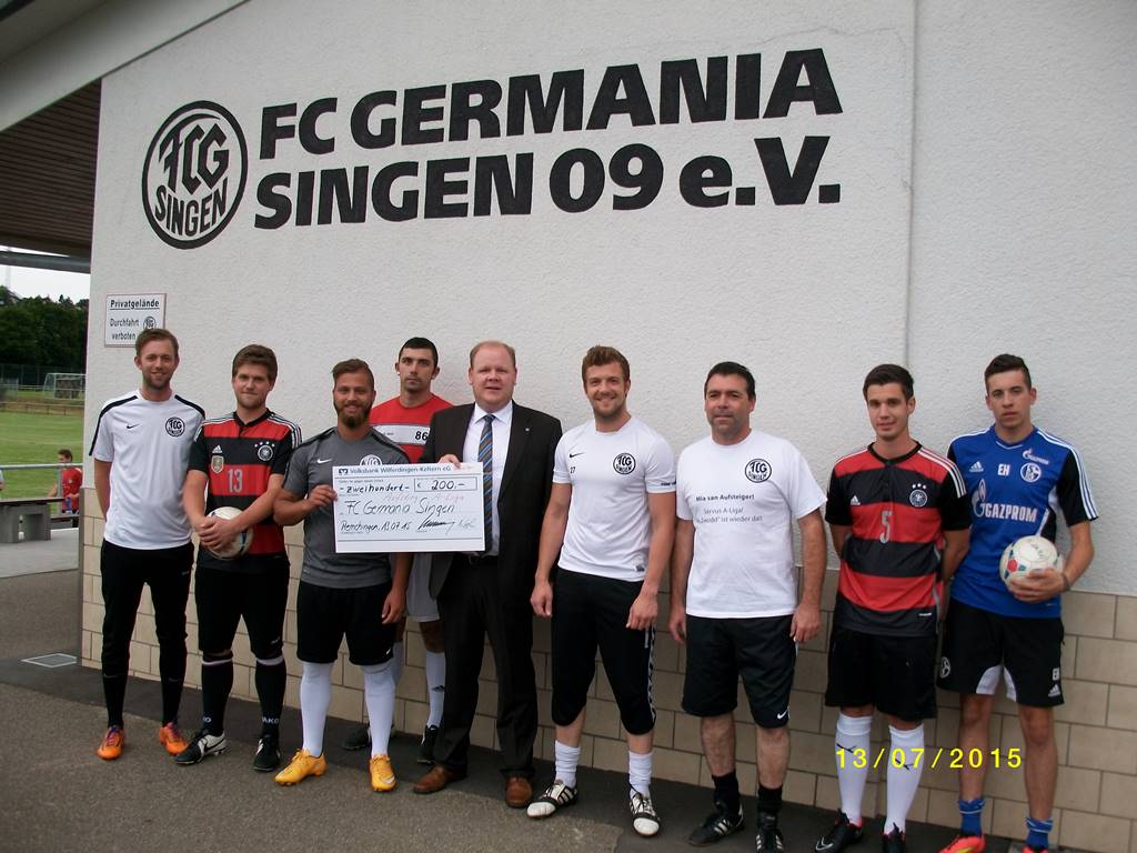 Spende an den FC Germania Singen überreicht – Gratulation zum Wiederaufstieg der 2. Mannschaft in die Kreisklasse A